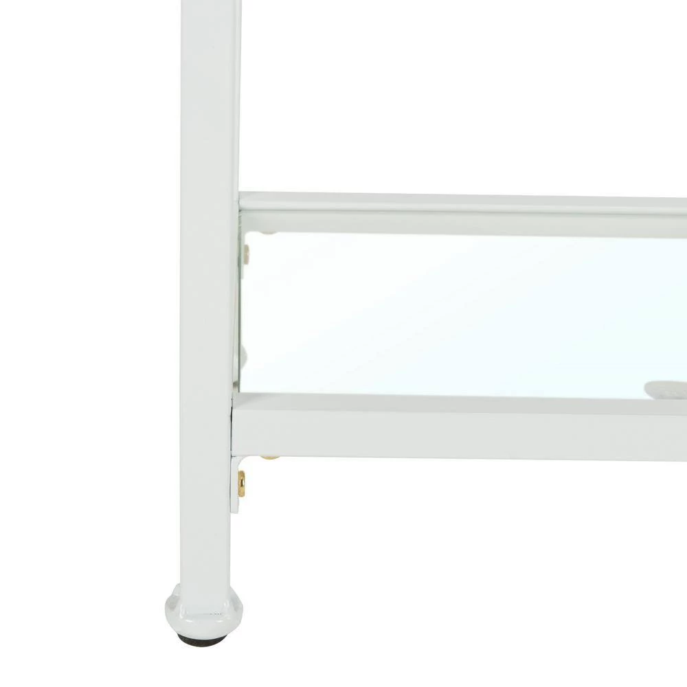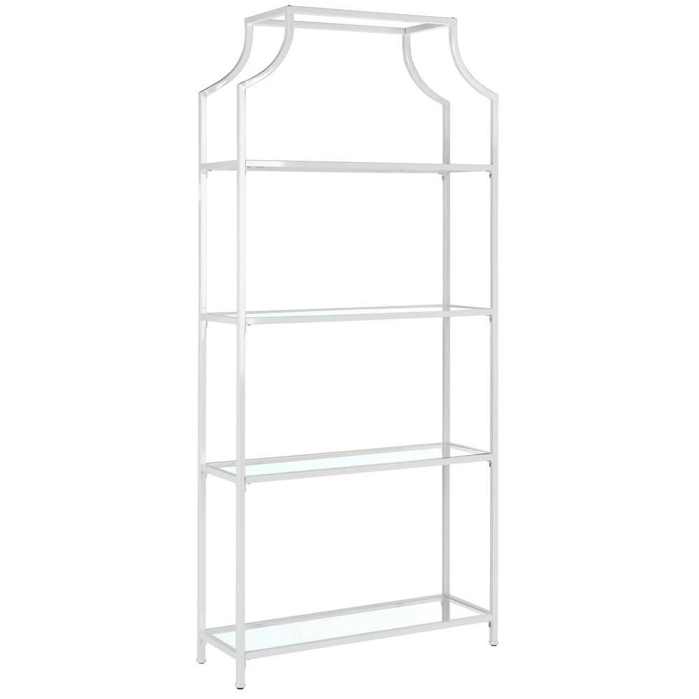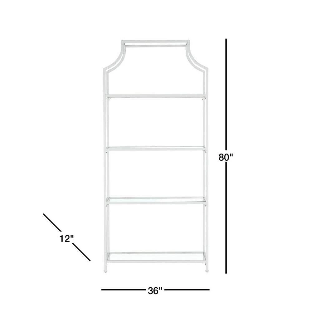 This 4-tier tagre offers a stylish way to store and display. Designed with a bright white finish, it features sturdy metal construction, clear open shelves and clean lines that create four layers of storage for the living room, kitchen or great room. This is a great addition to your home whether in the country side or busy city.