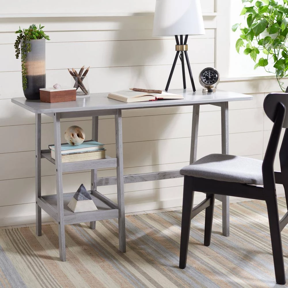 Poised and practical, this Sofara Desk is a designer staple in any home office. Sofara’s clean-lined frame features 2-open shelves ideal for filing, baskets, or any other workplace essentials, and its dark grey finish ensures Sofara flawlessly complements any room’s decor. Perfect addition for any home office or workspace.