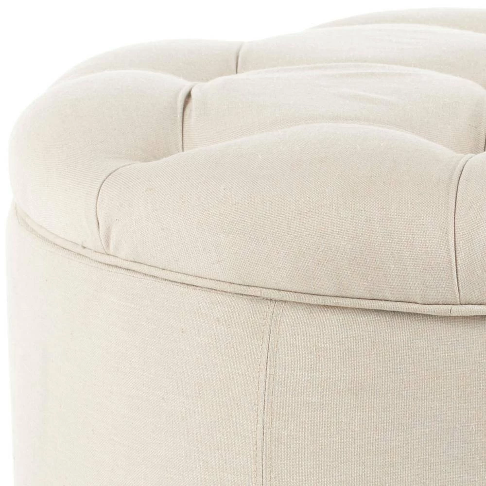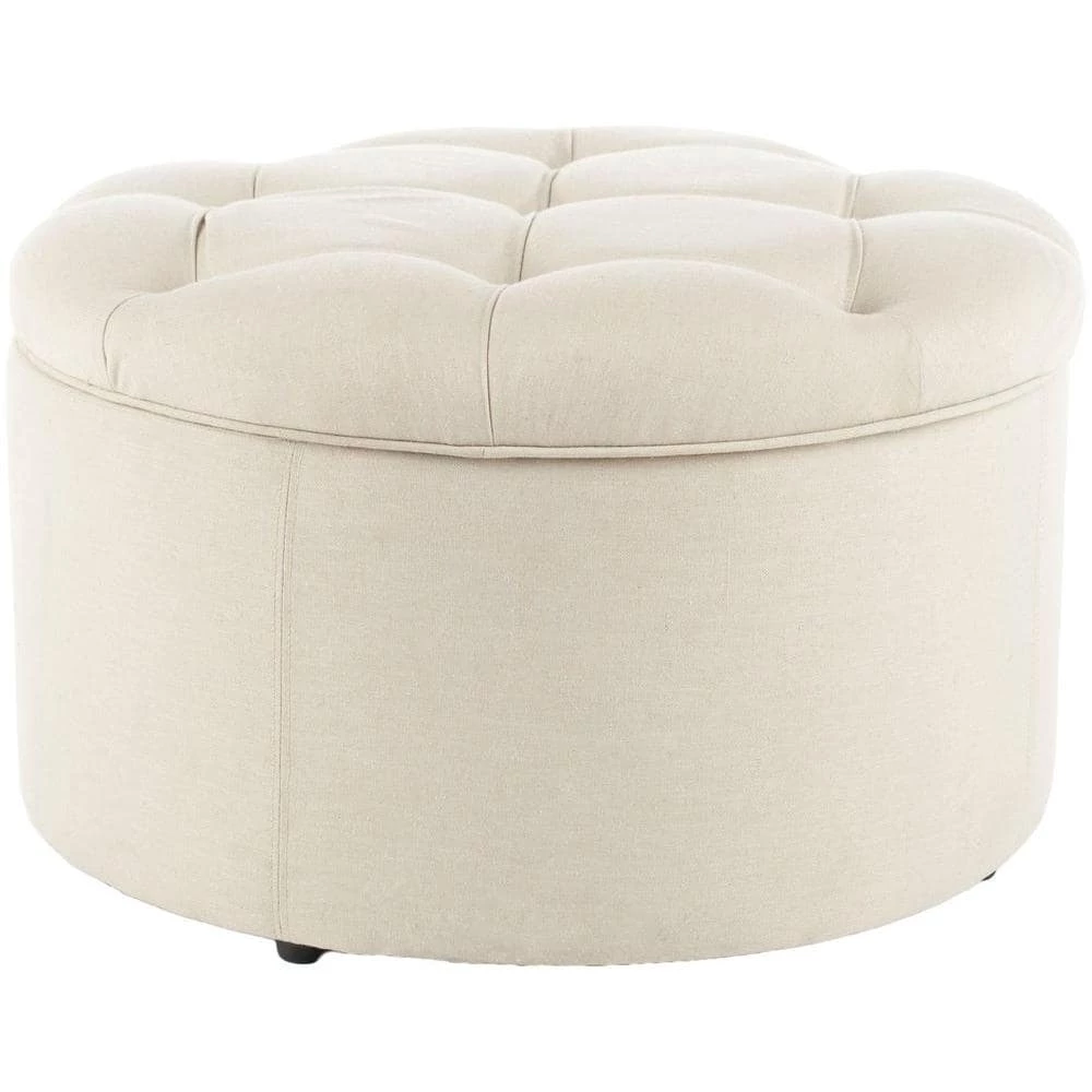 Sit back on your elegant Safavieh Mercer Ottomans Ottoman. This ottoman is made of wood and it is upholstered with linen, offering a very compact material that is long lasting and exceptionally comfortable to sit on. Featuring a modern style, it is great for adding a sleek element to your home. It features a space-saving design, which is great for creating a clean and neat room decor. It has a storage area, which is ideal for keeping small items nearby, yet out of the way. This ottoman has a unique color and design that will definitely be the centerpiece for your home.