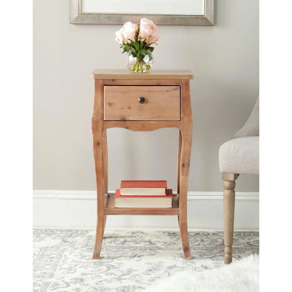 Brighten any room with the curvaceous lines and traditional charm of the Thelma end table. Crafted of fir wood with natural honey finish, this single drawer table with lower shelf is the perfect accent to country or coastal interiors. Use the Thelma end table alone beside a chair, or in pairs on either end of a sofa or bed.