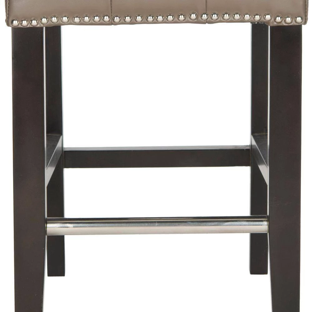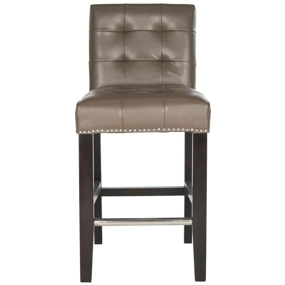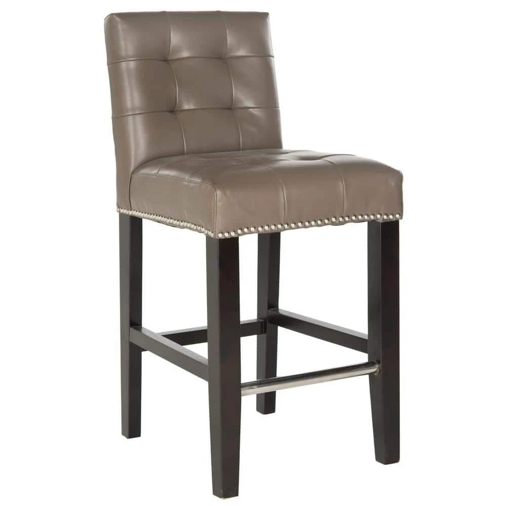 Enhance any space with the Safavieh Mercer Bar Stool. Featuring a modern style, this stool is ideal for transforming your existing interior design. It is designed without arms, so you can fit it under the table or bar. It features a full back, giving it the comfortable feel of a dining chair yet still maintaining the stylish appearance of a stool. This bar stool has a faux leather seat, adding a touch of style. Featuring a wooden frame, it will look excellent in pretty much any setting since it has a timeless feel. Designed in gray, it is easy to match with your other furniture. This bar stool has nailhead trim for elegant detailing. It has a foot rest, ensuring a more ergonomic design and promoting good posture.