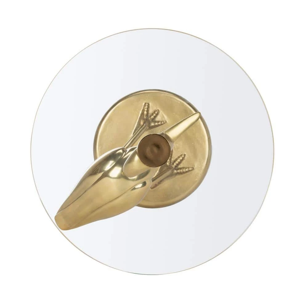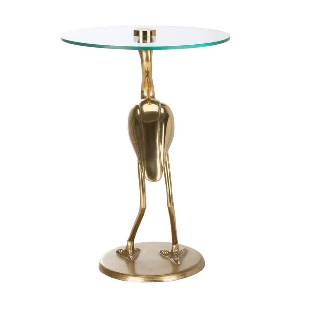 Add whimsical charm to any living room with this contemporary crane base accent table. Finished in a brilliant gold, this classic sculpture exudes character and serenity, while its functional transparent glass top ensures an artistic view from any angle. This is a great addition to your home whether in the country side or busy city.