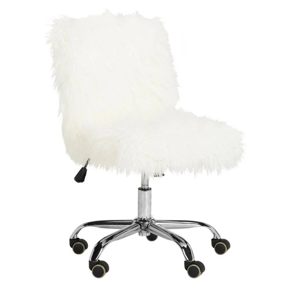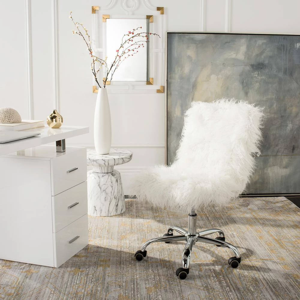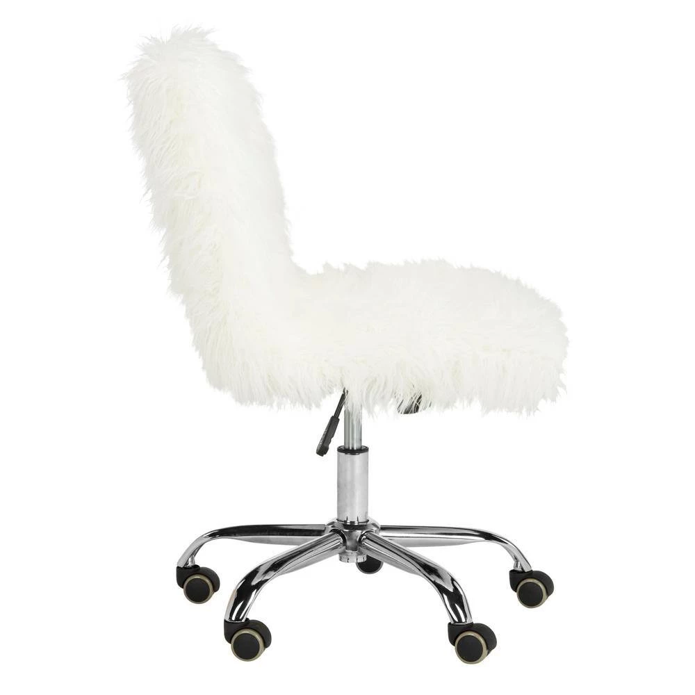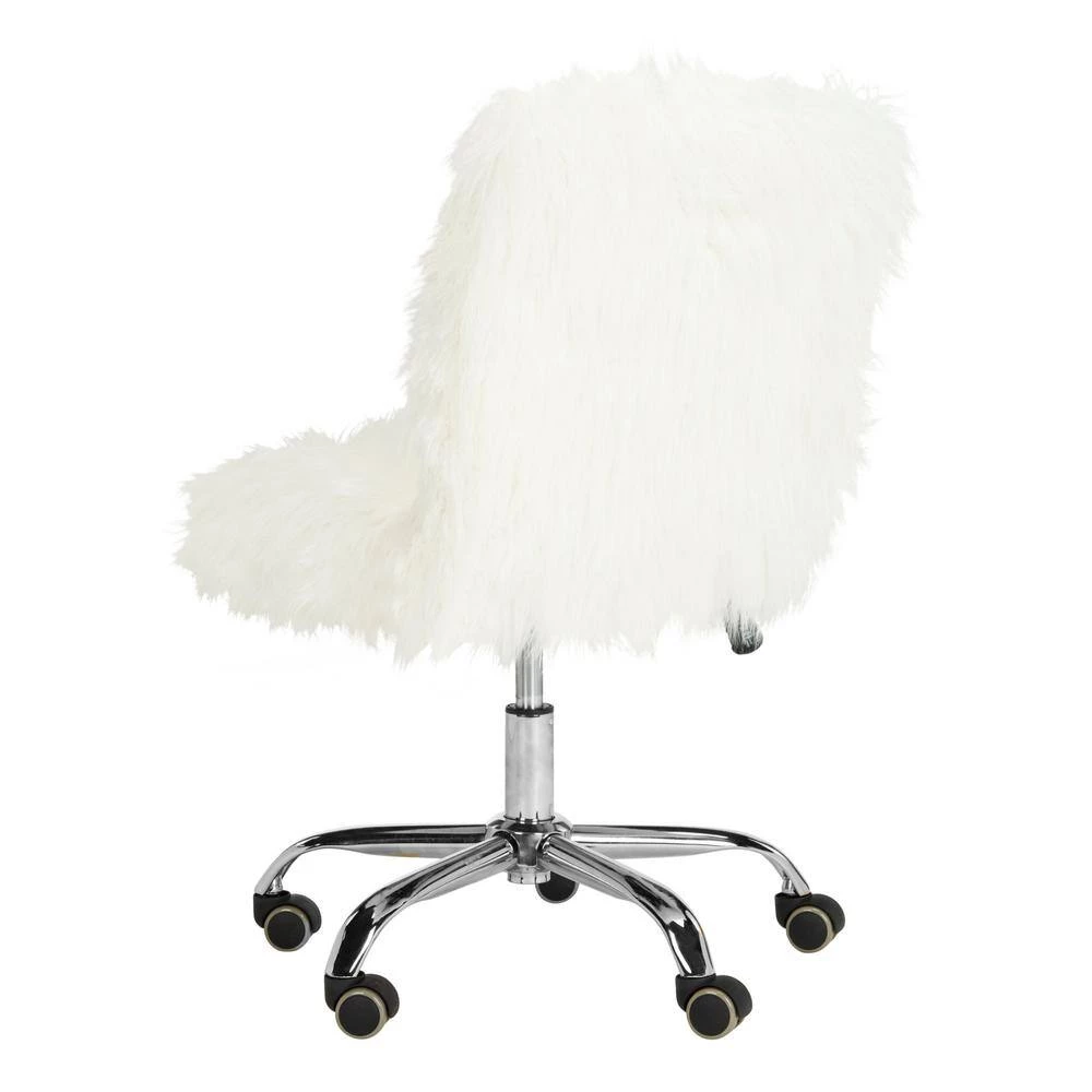 Transform any office into a glamourous work space with this contemporary faux sheepskin swivel office chair. Navigation is a breeze with its polished chrome legs and swivel mechanism and sitting atop its chic upholstery makes any occupation a dream job. Its a stunning addition to the study or contemporary office suite.