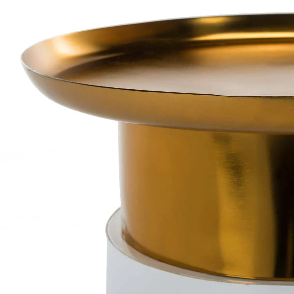 Bring a chic, modern touch to your decor with this contemporary metal tray top side table pairs form and function. Designed with polished white curves and a shimmering gold-finished tray top, elegant entertaining is a breeze in any living room. This is a great addition for your home whether you live in the country side or the busy city.