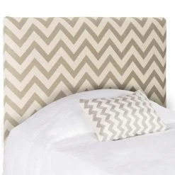 Featuring graphic chevron printed gray and white upholstery in a cotton and linen blend, this dramatic twin size headboard will instantly transform a bedroom with hip modern style. Its rectangular silhouette counterpoints the strong graphic pattern. This is a perfect addition to any home bedroom decor.