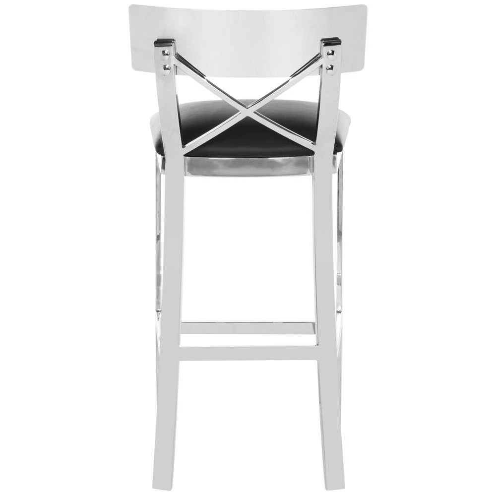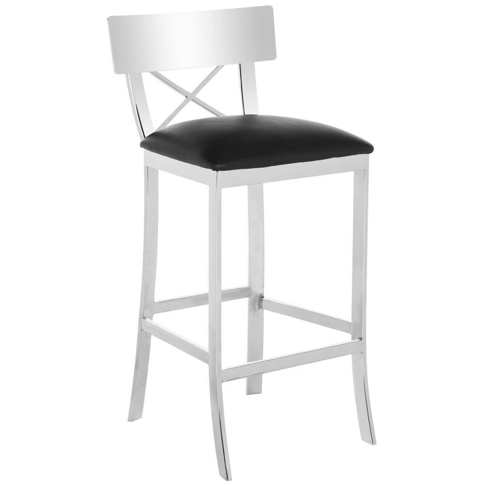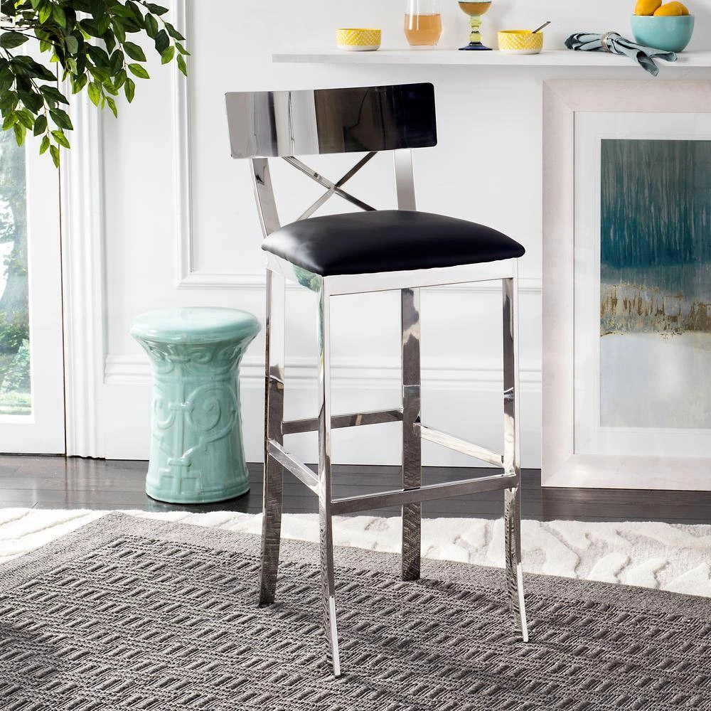Add style to your kitchen counter or bar with the Safavieh FOX Bar Stool. This bar stool is designed with a low back, conveniently sliding completely underneath the counter. It has an armless design, so you can tuck it under the table or bar. Featuring a modern style, it is great for contemporary seating areas. It features a faux leather seat, adding a stylish touch. Coming with a metal frame, this stool can tolerate frequent use, making it excellent for any home. This black stool is easy to match with the rest of your furniture. It has a foot rest, ensuring that you sit with proper posture.